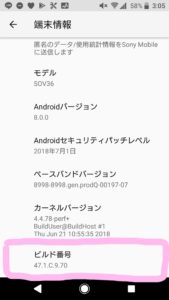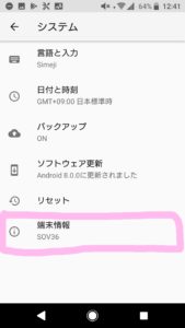 「端末情報」を選び一番下にある「ビルド番号」を7回タップしてください。