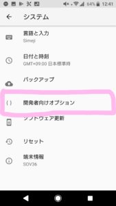 一つ前のシステムに戻ってみて下さい、さっきまでは存在しなかった「開発者向けオプション」が出現しています。こちらを選択しましょう。