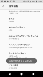 スマホの暗証番号が聞かれるので、いつもロック画面を解除するのに使ってるパスワードを入力してください。すると「これで開発者になれました!」とメッセージが表示されます。