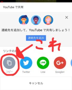 YouTubeのアプリからなら【↩︎】こんなマークの共有ボタンをおして下さい(^_^)
